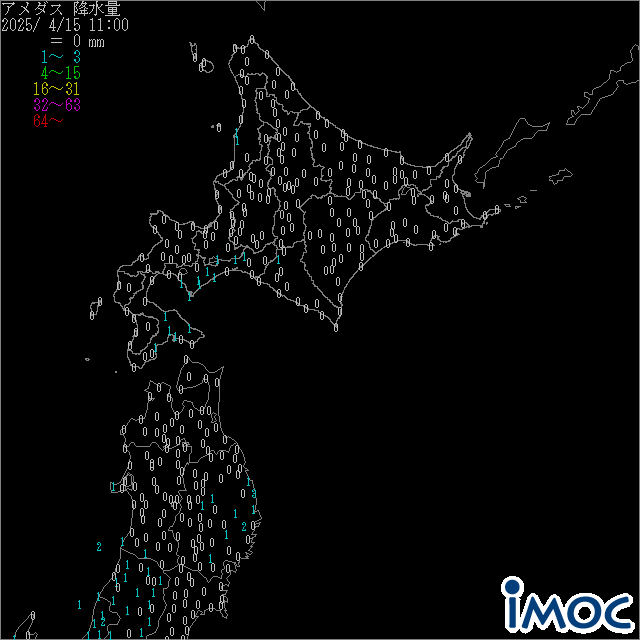 北海道 アメダス降水量(気象庁発表) 2025年4月15日11時(JST)