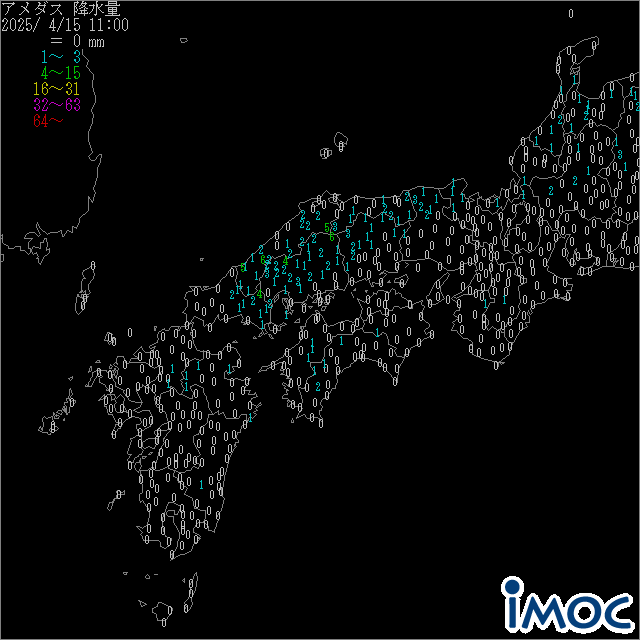 西日本 アメダス降水量(気象庁発表) 2025年4月15日11時(JST)