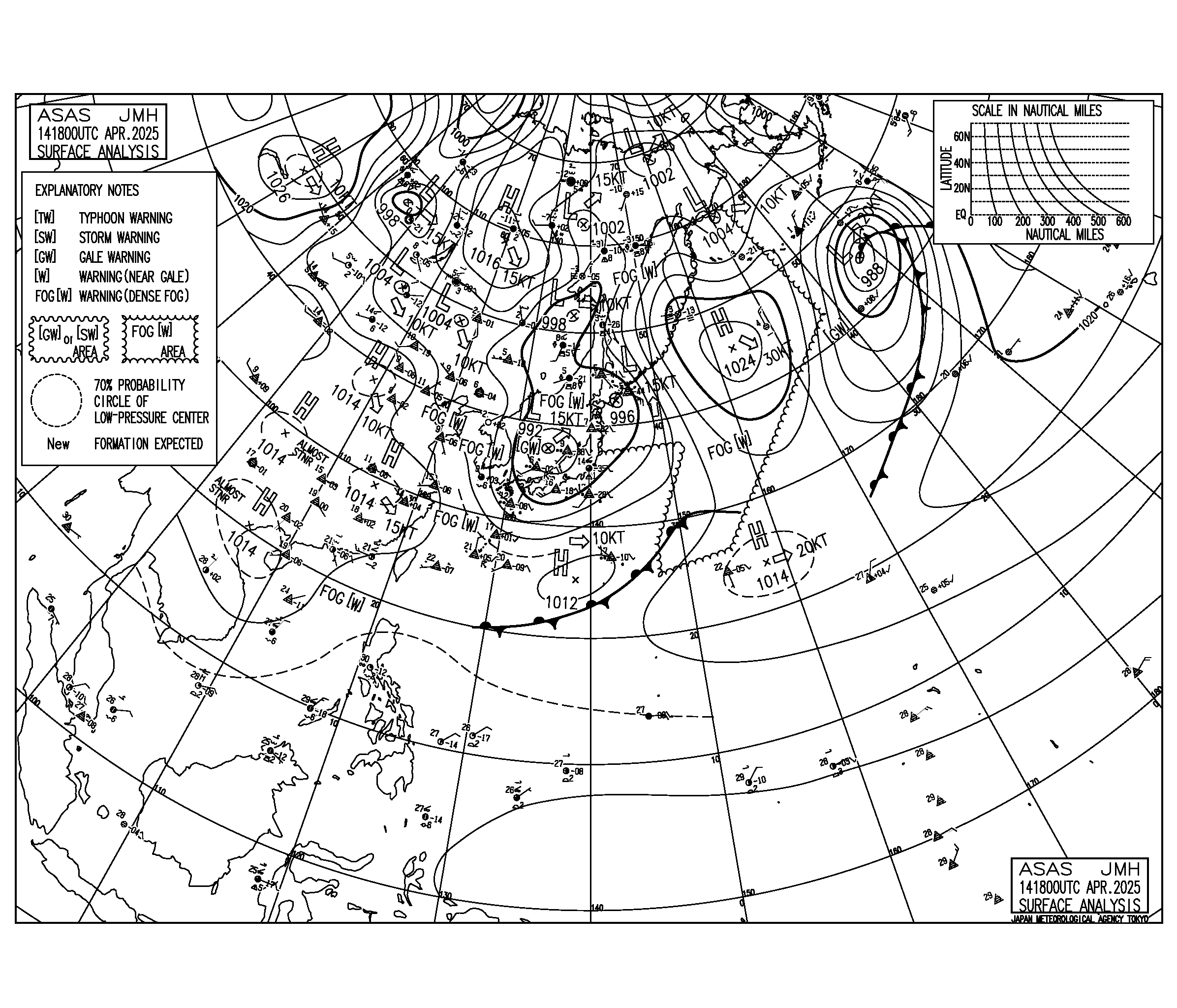 地上天気図 (気象庁提供) 2025年4月15日3時(JST)