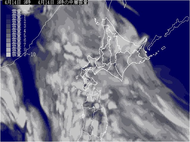 北日本 中層雲量(気象庁提供) 2025年4月14日