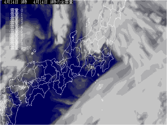 東日本 全雲量(気象庁提供) 2025年4月14日