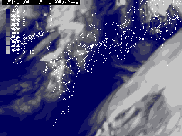 西日本 全雲量(気象庁提供) 2025年4月14日