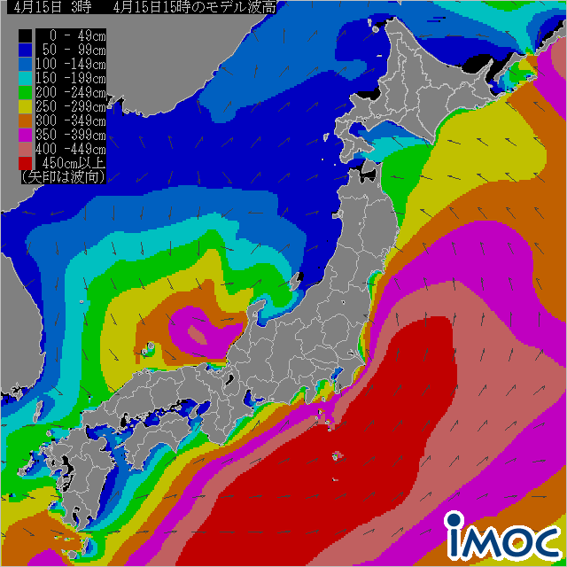 日本 沿岸波浪予想(気象庁提供) 2025年4月15日(火)15時(JST)