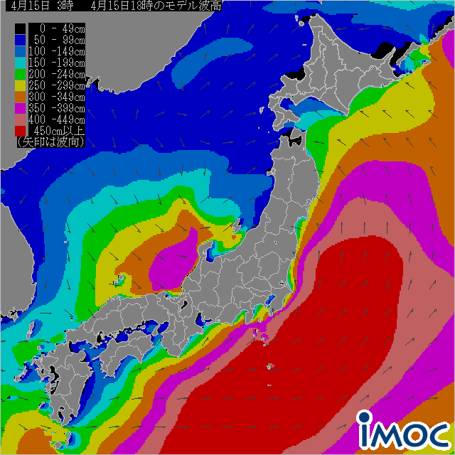 日本 沿岸波浪予想(気象庁提供) 2025年4月15日(火)18時(JST)