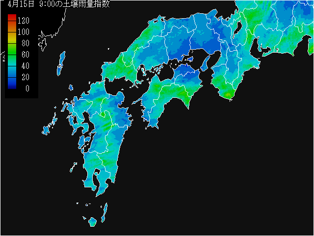 西日本 土壌雨量指数(気象庁提供) 2025年4月15日9時(JST) 更新