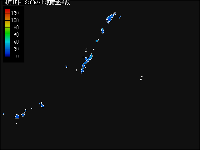 南西諸島 土壌雨量指数(気象庁提供) 2025年4月15日9時(JST) 更新