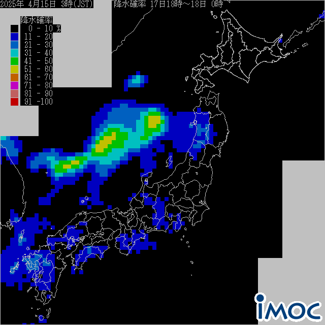 日本 降水確率(気象庁提供) 2025年4月17日(木)18時~24時(JST)