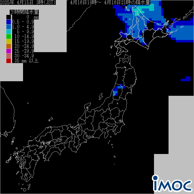 日本 降水量(気象庁提供) 2025年4月16日(水)18時~21時(JST)