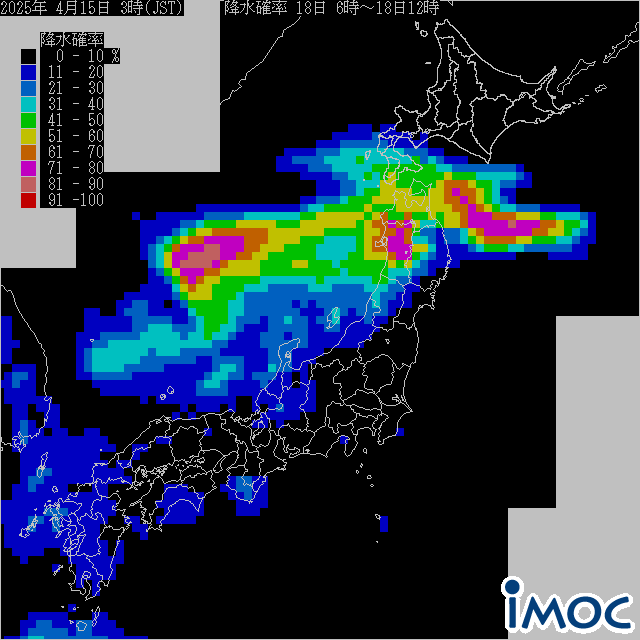 日本 降水確率(気象庁提供) 2025年4月18日(金)6時~12時(JST)