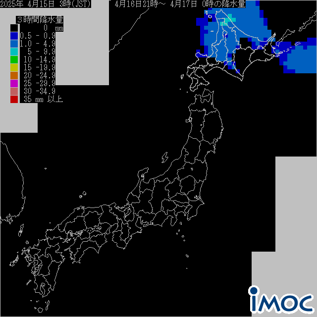 日本 降水量(気象庁提供) 2025年4月16日(水)21時~24時(JST)