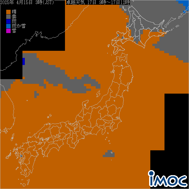 日本 卓越天気(気象庁提供) 2025年4月17日(木)9時~12時(JST)