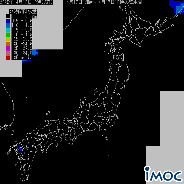 日本 降水量(気象庁提供) 2025年4月17日(木)12時~15時(JST)