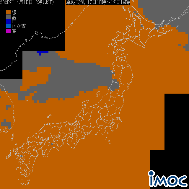 日本 卓越天気(気象庁提供) 2025年4月17日(木)15時~18時(JST)