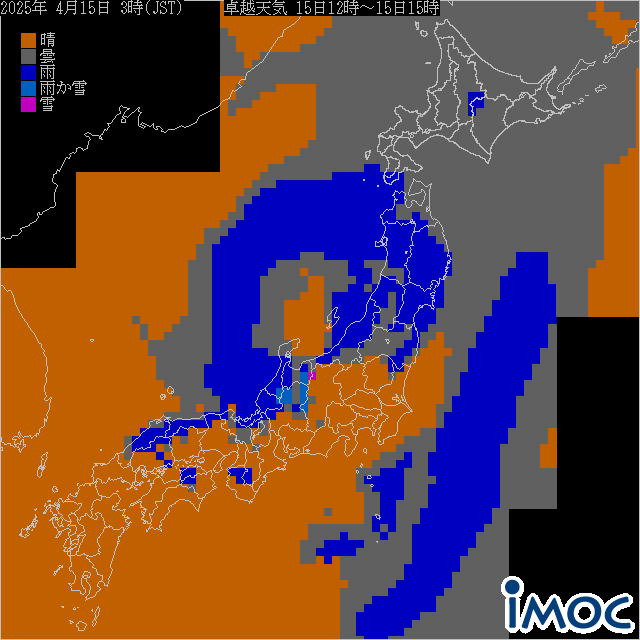 日本 卓越天気(気象庁提供) 2025年4月15日(火)12時~15時(JST)