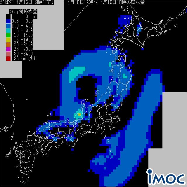 日本 降水量(気象庁提供) 2025年4月15日(火)12時~15時(JST)