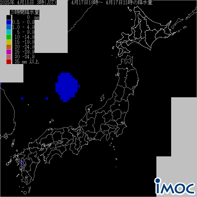 日本 降水量(気象庁提供) 2025年4月17日(木)18時~21時(JST)