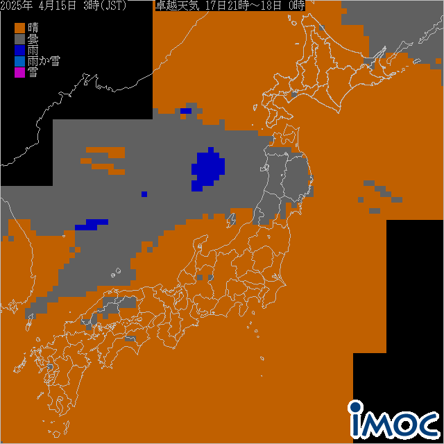 日本 卓越天気(気象庁提供) 2025年4月17日(木)21時~24時(JST)
