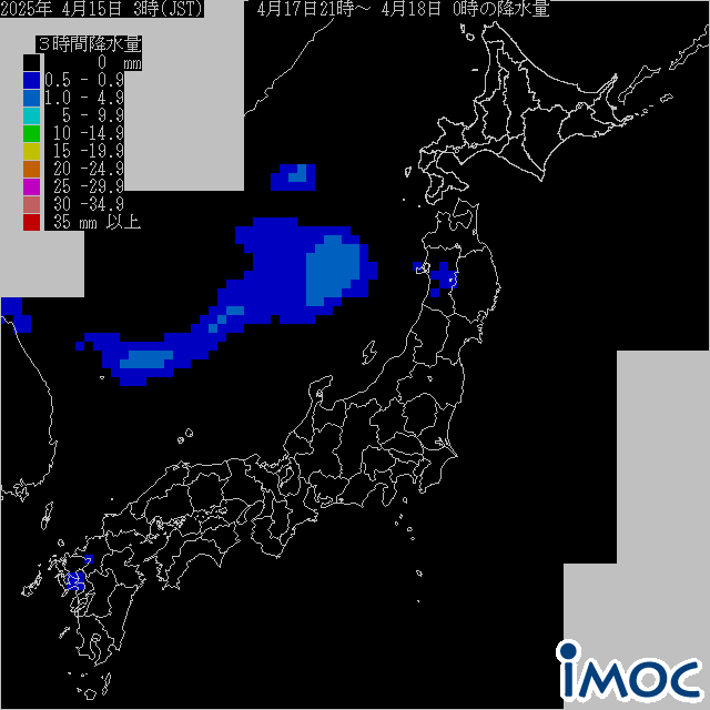 日本 降水量(気象庁提供) 2025年4月17日(木)21時~24時(JST)