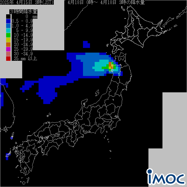 日本 降水量(気象庁提供) 2025年4月18日(金)0時~3時(JST)