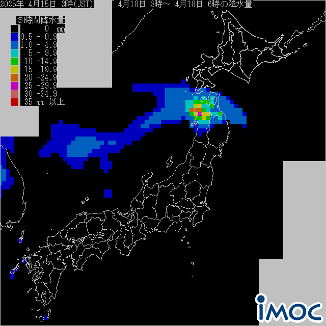 日本 降水量(気象庁提供) 2025年4月18日(金)3時~6時(JST)