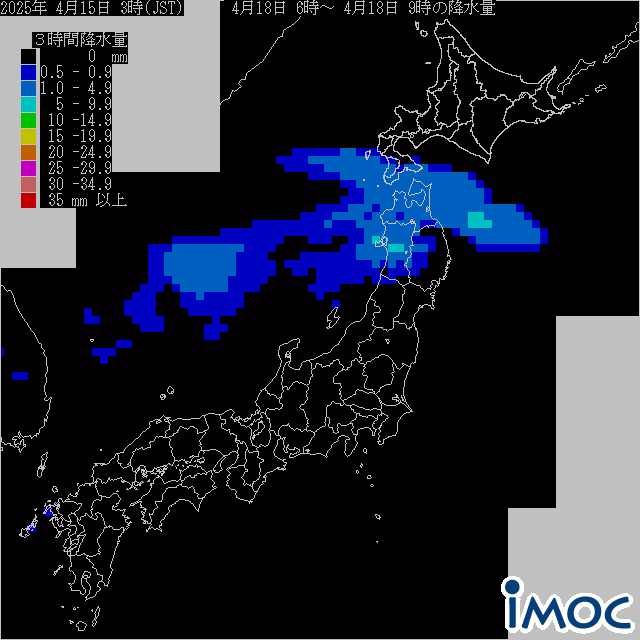 日本 降水量(気象庁提供) 2025年4月18日(金)6時~9時(JST)