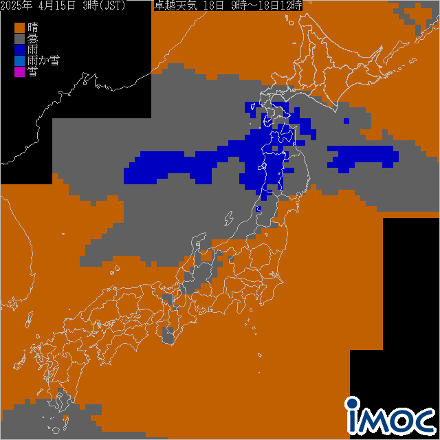 日本 卓越天気(気象庁提供) 2025年4月18日(金)9時~12時(JST)