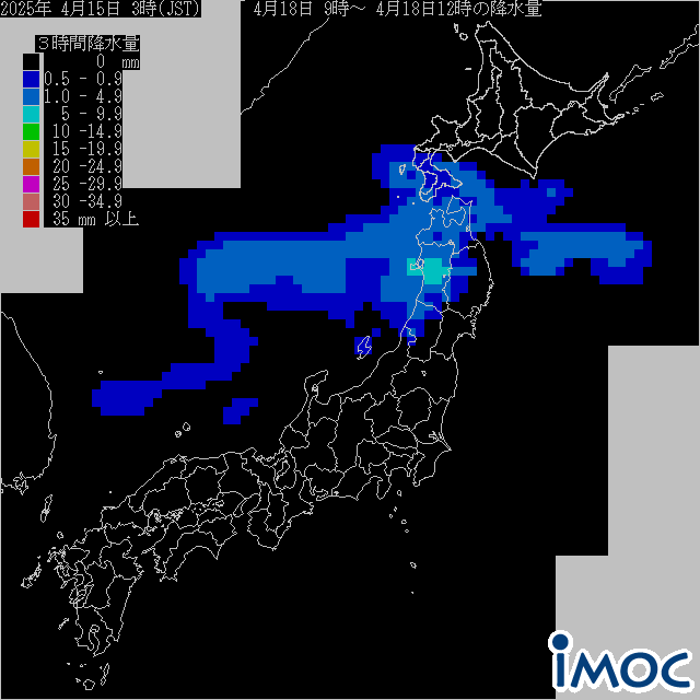 日本 降水量(気象庁提供) 2025年4月18日(金)9時~12時(JST)
