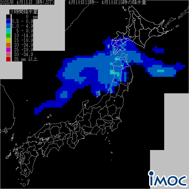 日本 降水量(気象庁提供) 2025年4月18日(金)12時~15時(JST)