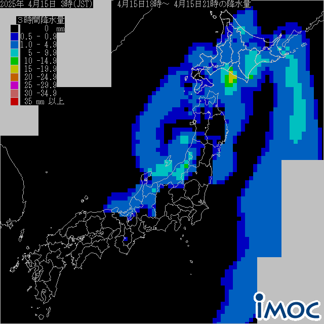 日本 降水量(気象庁提供) 2025年4月15日(火)18時~21時(JST)
