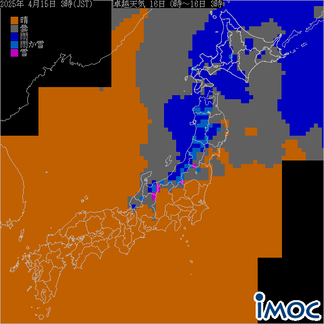 日本 卓越天気(気象庁提供) 2025年4月16日(水)0時~3時(JST)