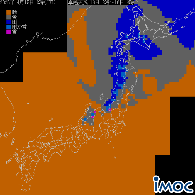 日本 卓越天気(気象庁提供) 2025年4月16日(水)3時~6時(JST)