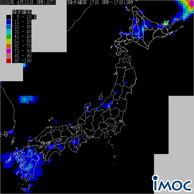 日本 降水確率(気象庁提供) 2025年4月17日(木)6時~12時(JST)