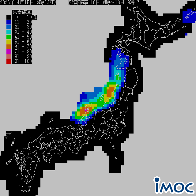 日本 発雷確率(気象庁提供) 2025年4月16日(水)6時~9時(JST)