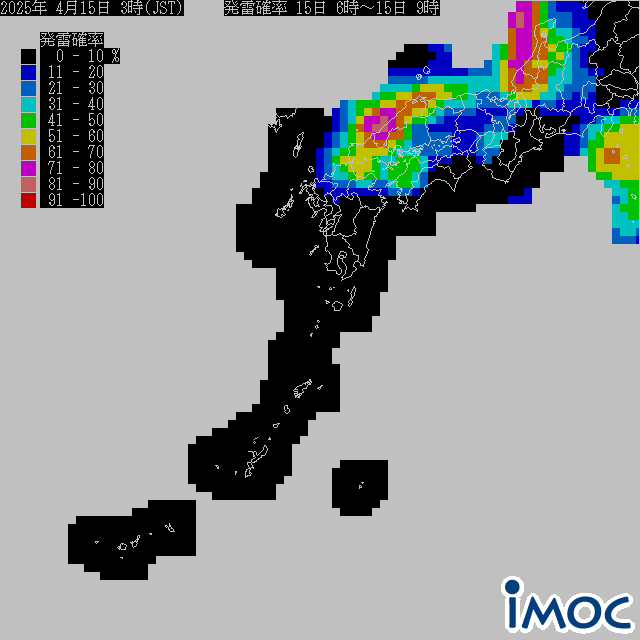 南日本 発雷確率(気象庁提供) 2025年4月15日(火)6時~9時(JST)