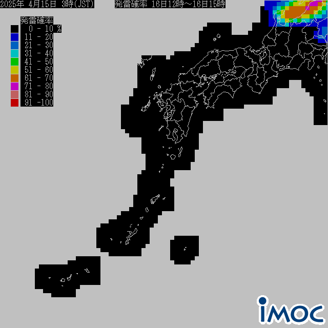 南日本 発雷確率(気象庁提供) 2025年4月16日(水)12時~15時(JST)