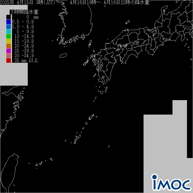 南日本 降水量(気象庁提供) 2025年4月16日(水)18時~21時(JST)