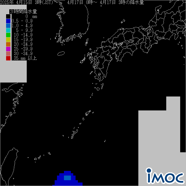 南日本 降水量(気象庁提供) 2025年4月17日(木)0時~3時(JST)
