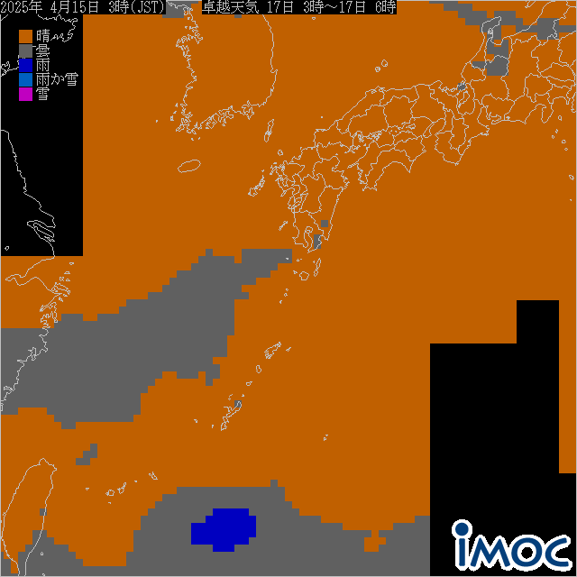 南日本 卓越天気(気象庁提供) 2025年4月17日(木)3時~6時(JST)