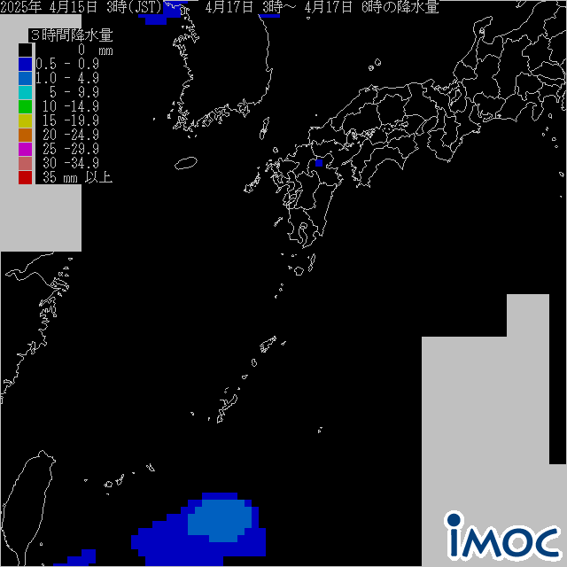 南日本 降水量(気象庁提供) 2025年4月17日(木)3時~6時(JST)