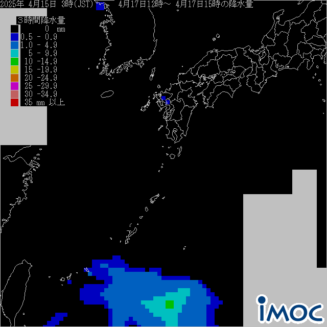 南日本 降水量(気象庁提供) 2025年4月17日(木)12時~15時(JST)