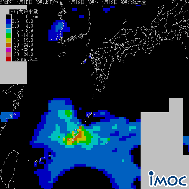南日本 降水量(気象庁提供) 2025年4月18日(金)6時~9時(JST)