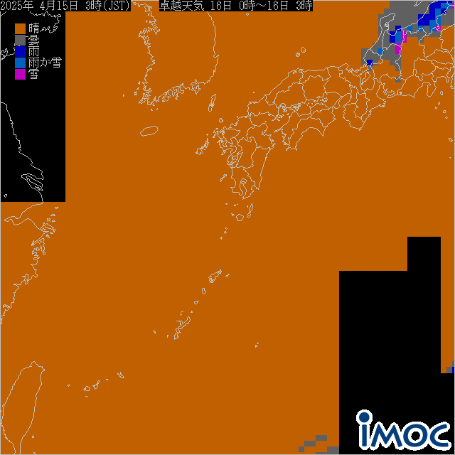 南日本 卓越天気(気象庁提供) 2025年4月16日(水)0時~3時(JST)