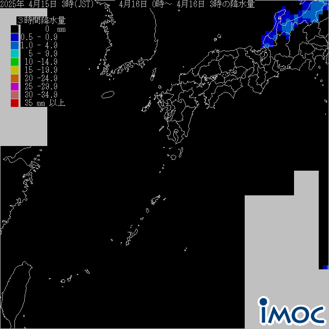 南日本 降水量(気象庁提供) 2025年4月16日(水)0時~3時(JST)