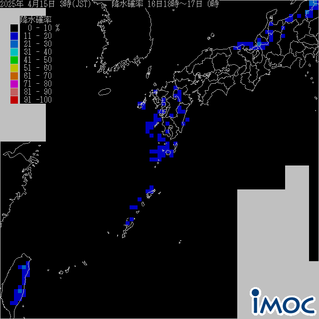 南日本 降水確率(気象庁提供) 2025年4月16日(水)18時~24時(JST)
