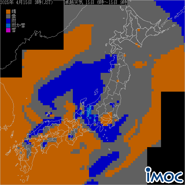 日本 卓越天気(気象庁提供) 2025年4月15日(火)6時~9時(JST)