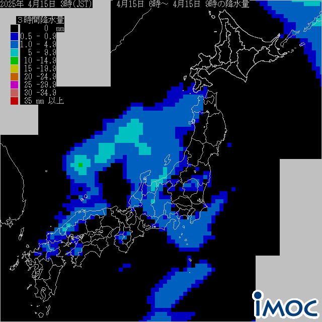 日本 降水量(気象庁提供) 2025年4月15日(火)6時~9時(JST)