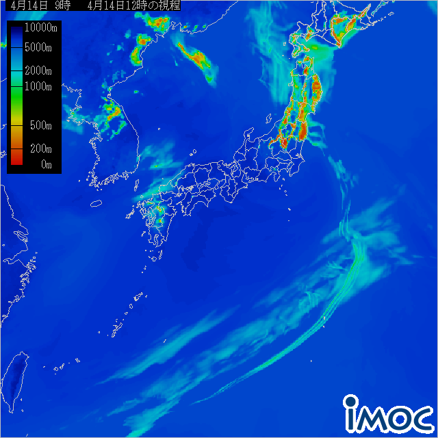 南日本 視程ガイダンス(気象庁提供) 2025年4月14日(月)12時(JST)