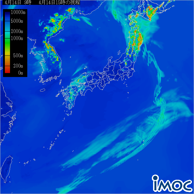 南日本 視程ガイダンス(気象庁提供) 2025年4月14日(月)15時(JST)