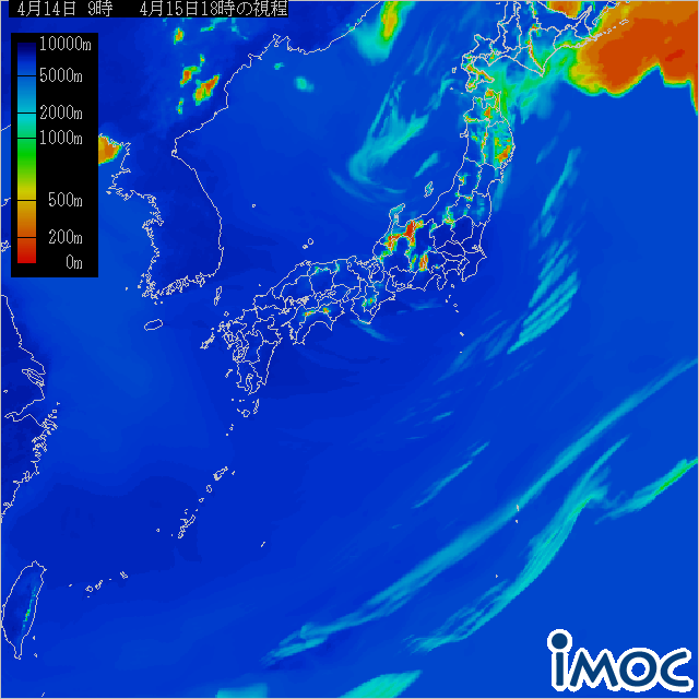 南日本 視程ガイダンス(気象庁提供) 2025年4月15日(火)18時(JST)