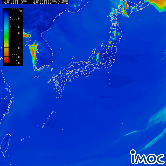 南日本 視程ガイダンス(気象庁提供) 2025年4月16日(水)12時(JST)